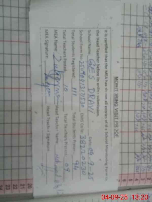 | EMIS Code: 38220230 | Name of School: GES DRAVI | |||