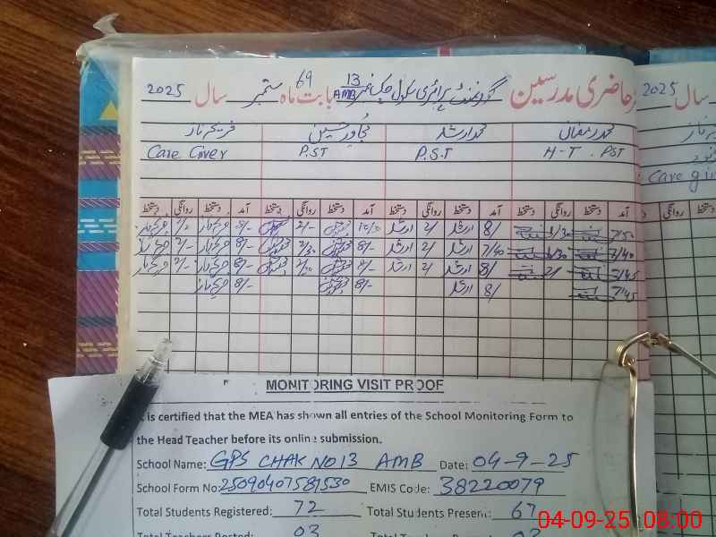 | Attendance Register | Head Teacher | MEA with School | Visit Proof |