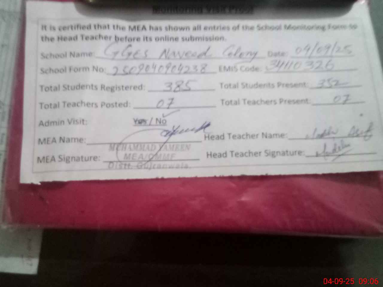 | EMIS Code: 34110326 | Name of School: GGES NAVEED COLONY | |||