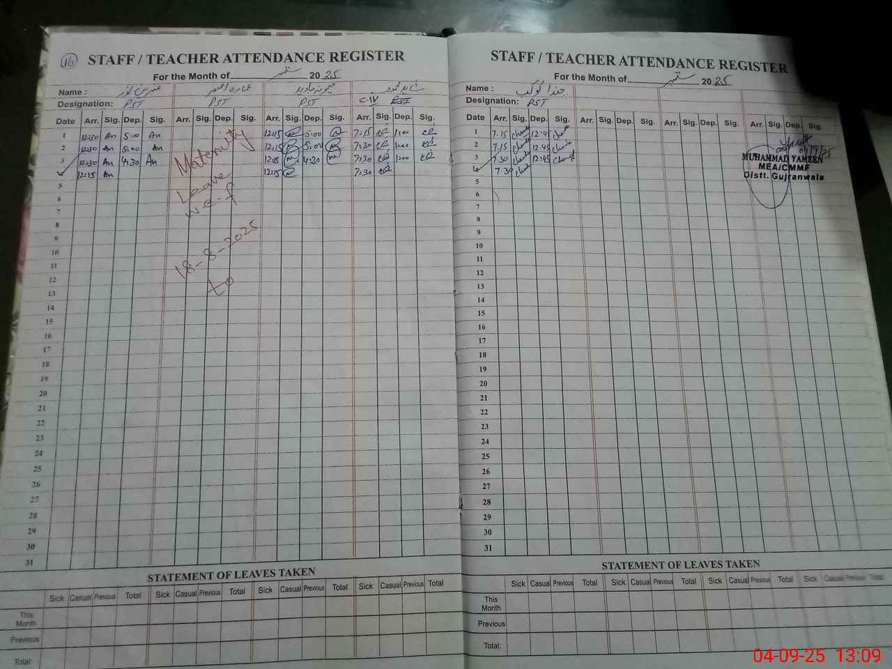 | Name: SA**** AR**** Designation: (School Headmaster's/Headmistress's) PST Phone/Cell Number: 03**** |