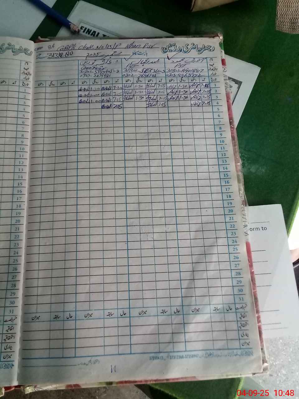 | CNIC | Full Name | Designation | R/C | Absence During Last Calender Month |