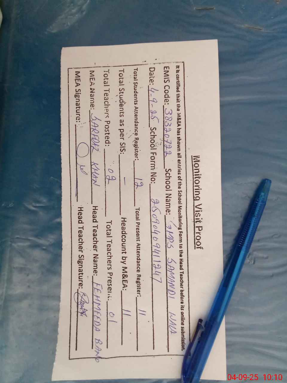 | EMIS Code: 38320722 | Name of School: GMPS SAMANDI WALA | |||