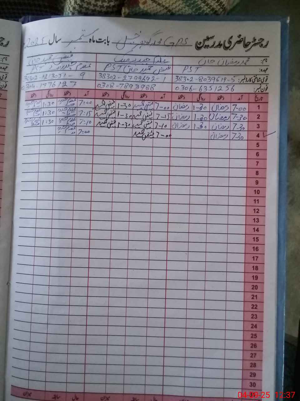 | Name: Mu**** Ra**** Kh**** Designation: (School Headmaster's/Headmistress's) PST Phone/Cell Number: 03**** |