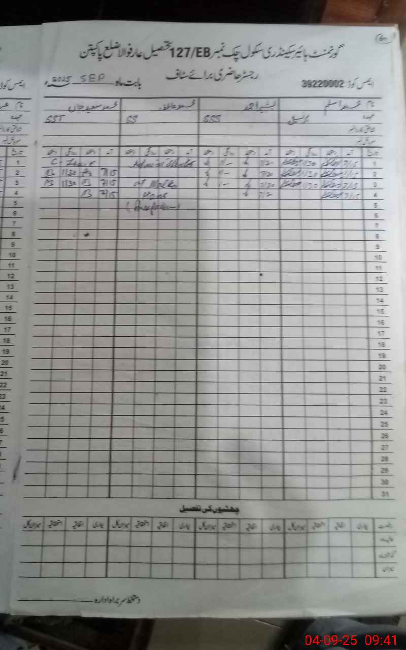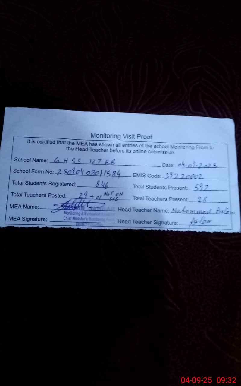 | EMIS Code: 39220002 | Name of School: GHSS 127/EB ARIFWALA | |||