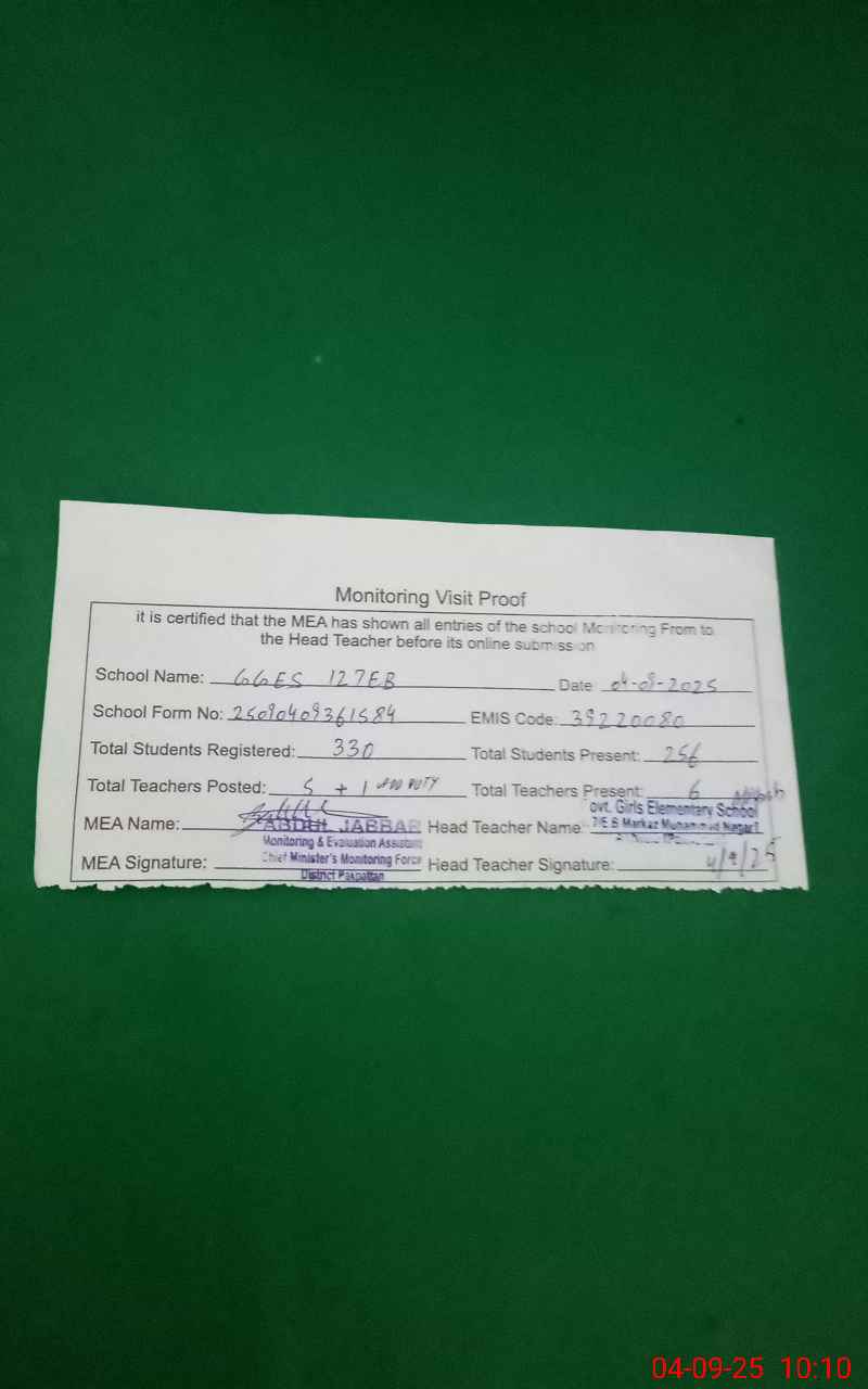 | EMIS Code: 39220080 | Name of School: GGES 127 EB | |||