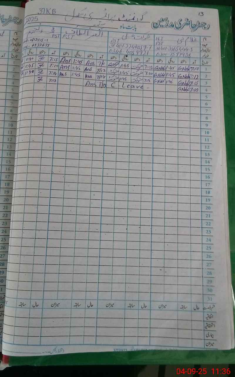 | Name: GH**** NA**** Designation: (School Headmaster's/Headmistress's) PST Phone/Cell Number: 03**** |