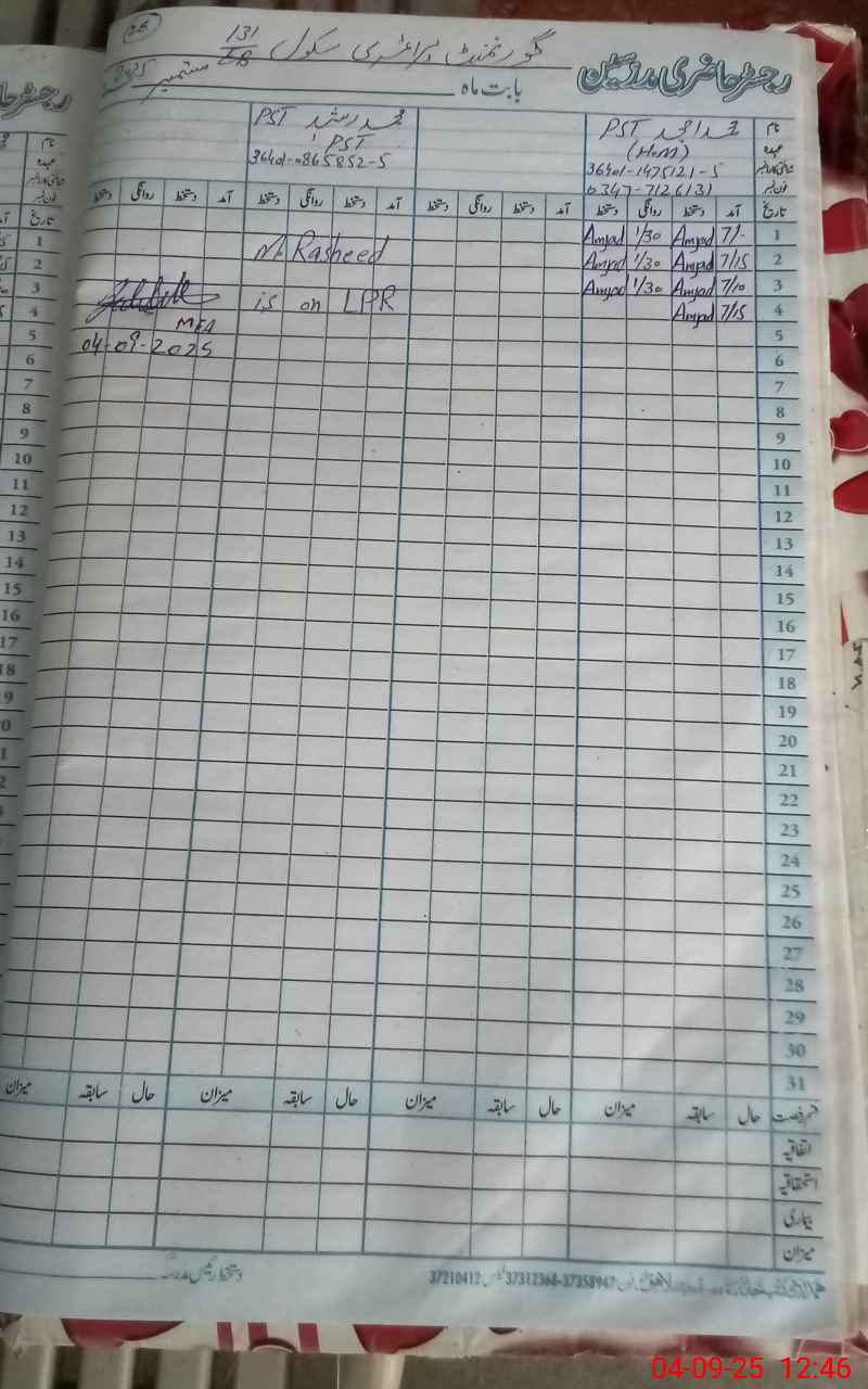 | Name: MU**** AM**** Designation: (School Headmaster's/Headmistress's) PST Phone/Cell Number: 03**** |
