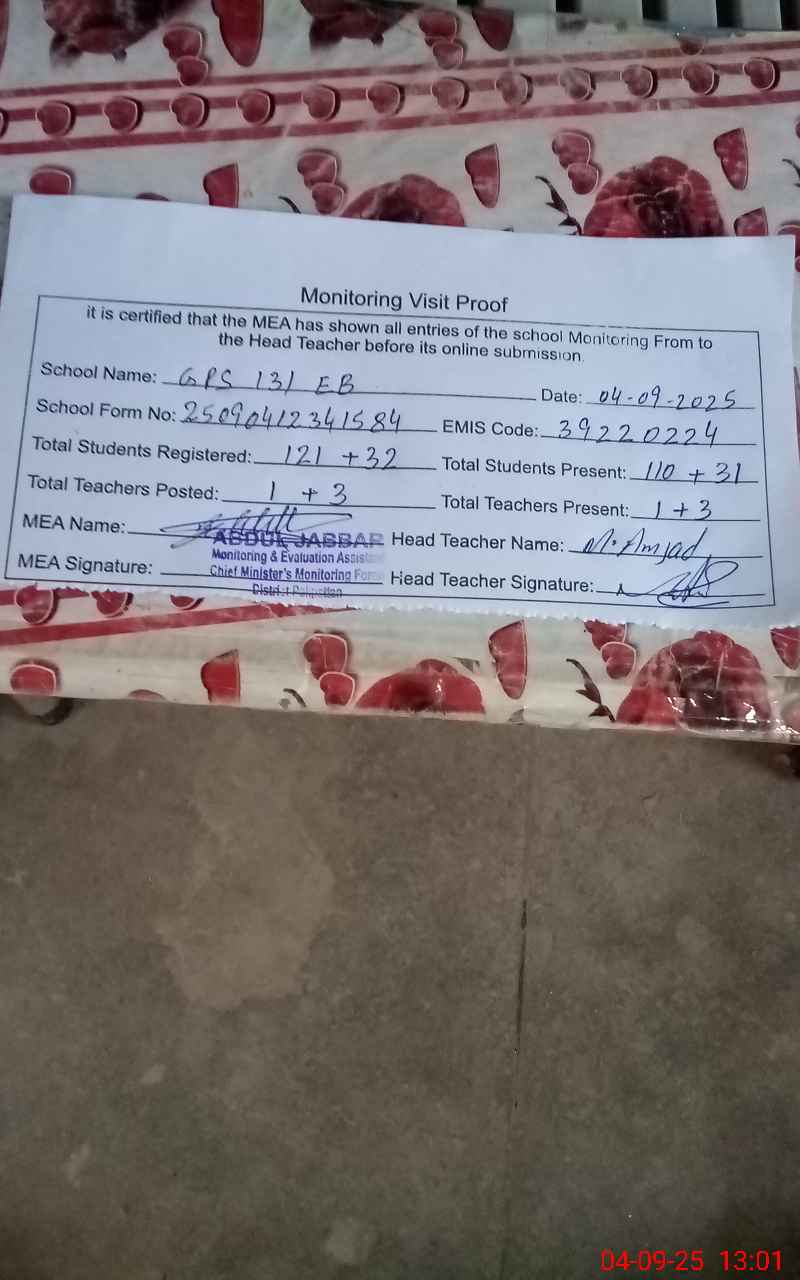 | EMIS Code: 39220224 | Name of School: GPS 131 EB P.O SAME | |||
