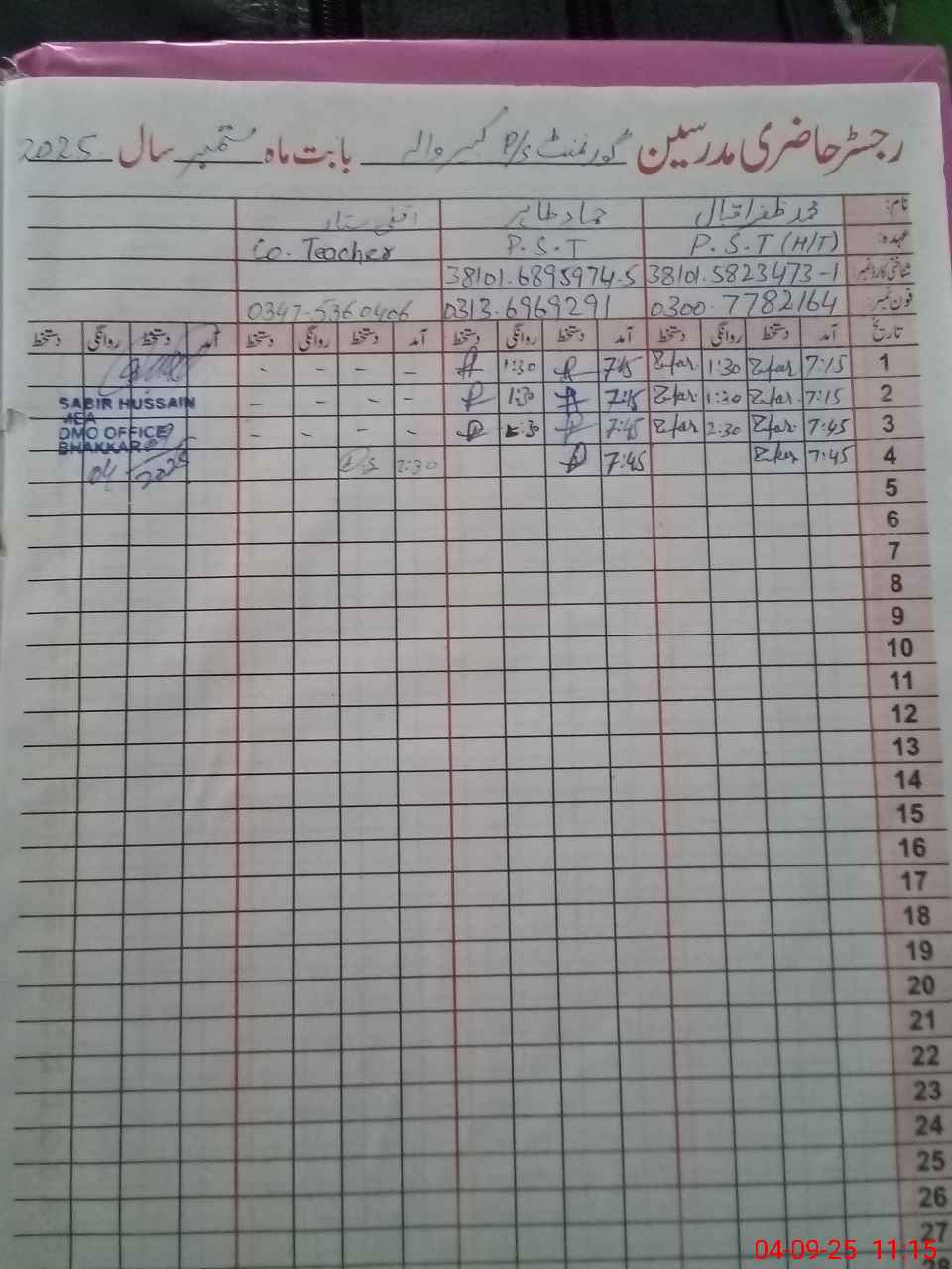 | Name: Za**** Iq**** Designation: (School Headmaster's/Headmistress's) PST Phone/Cell Number: 03**** |