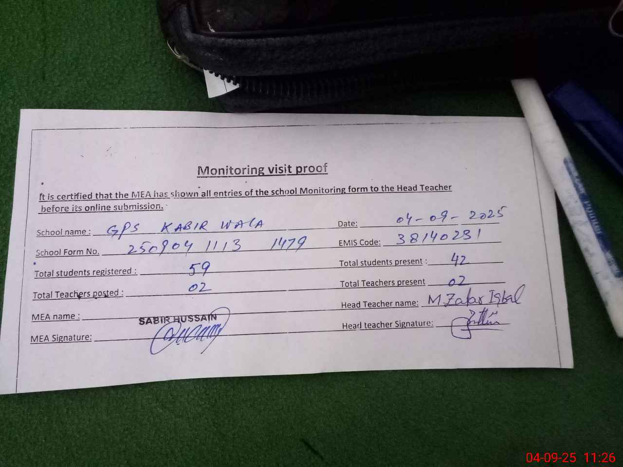 | EMIS Code: 38140231 | Name of School: GPS KABIR WALA PO SARWAR ABAD | |||