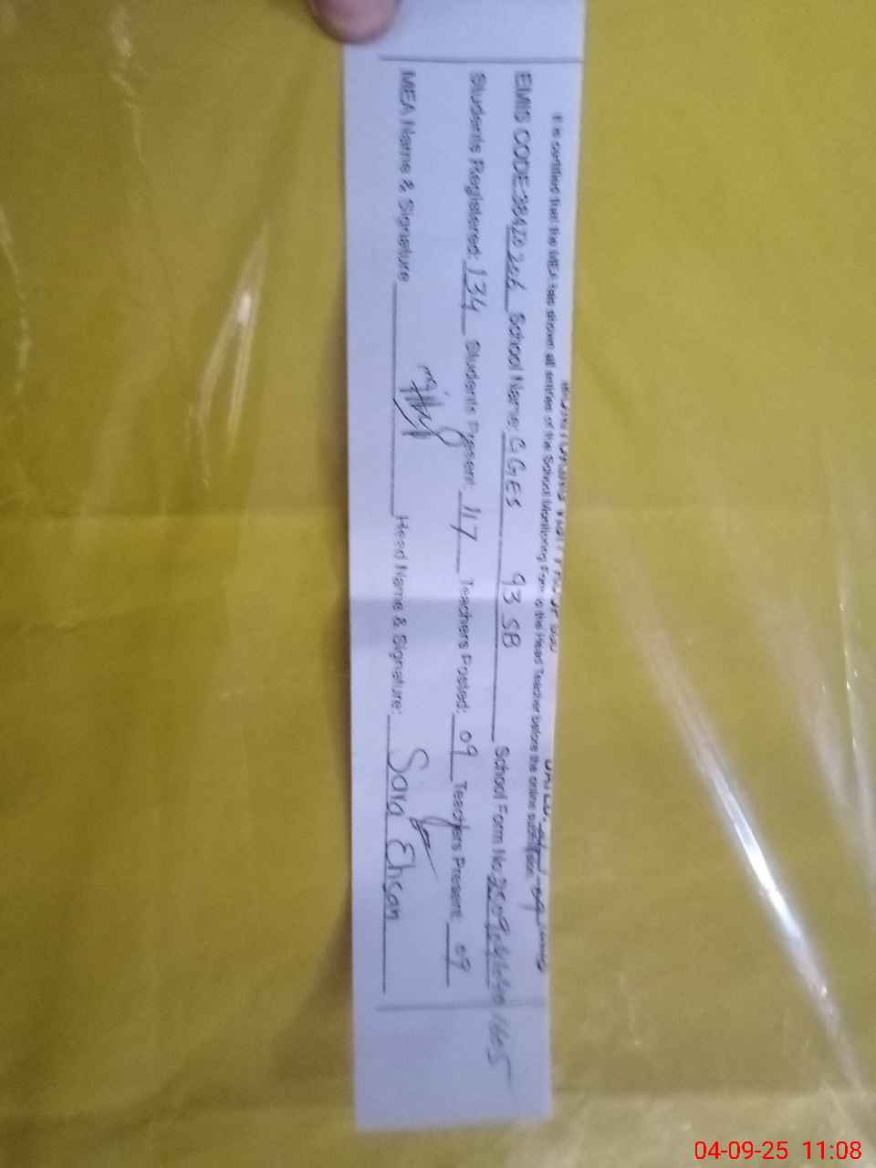 | Name: SA**** EH**** Designation: (School Headmaster's/Headmistress's) SSE (ENGLISH) Phone/Cell Number: 03**** |