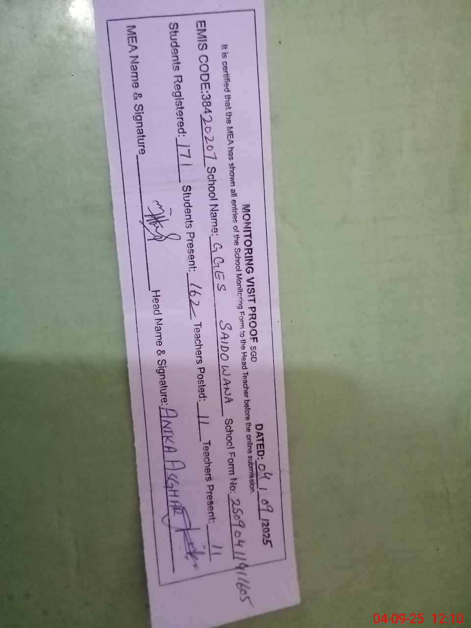| EMIS Code: 38420207 | Name of School: GGES SAIDOWANA | |||