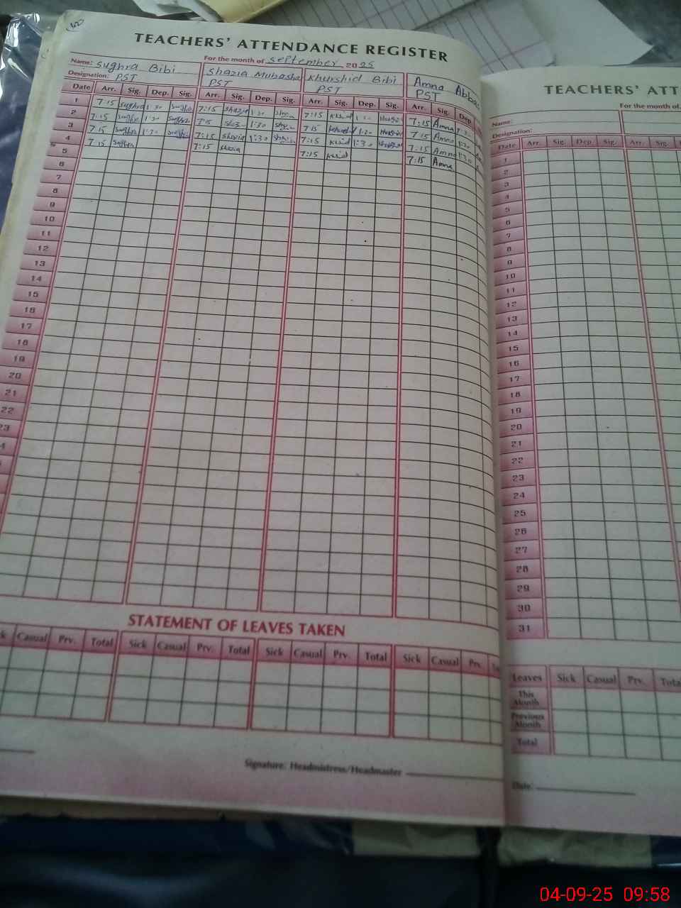 | Name: SU**** BI**** Designation: (School Headmaster's/Headmistress's) PST Phone/Cell Number: 03**** |