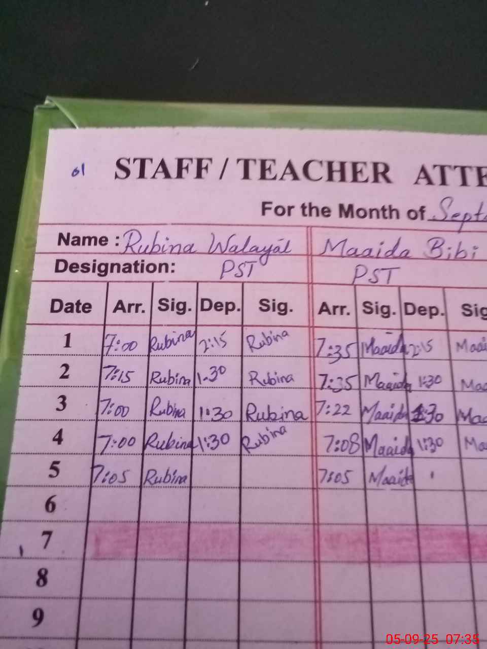 | Name: RU**** WA**** Designation: (School Headmaster's/Headmistress's) PST Phone/Cell Number: 03**** |