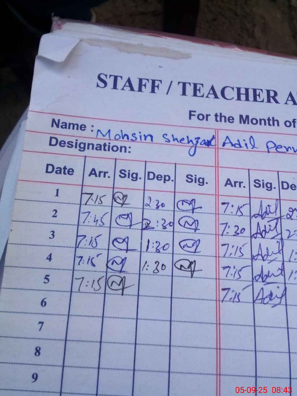 | Name: Mo**** Sh**** Designation: (School Headmaster's/Headmistress's) PST Phone/Cell Number: 03**** |