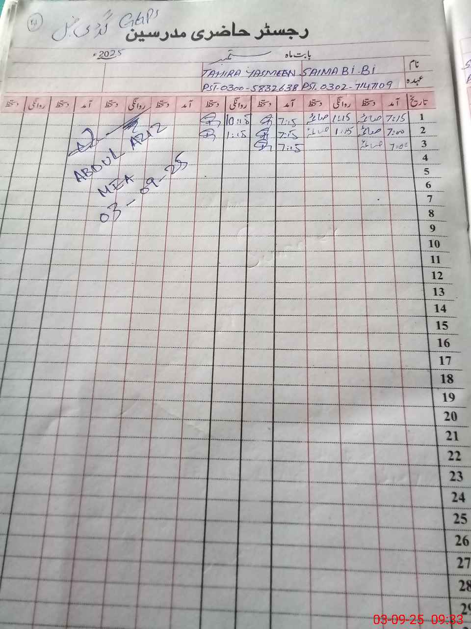 | Name: Na**** Designation: (School Headmaster's/Headmistress's) PST Phone/Cell Number: 03**** |