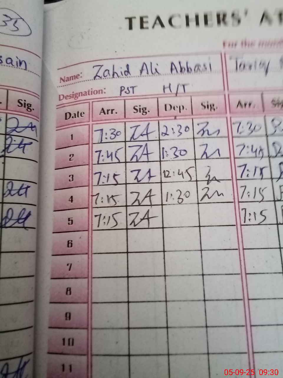| Name: Za**** Al**** Ab**** Designation: (School Headmaster's/Headmistress's) PST Phone/Cell Number: 03**** |