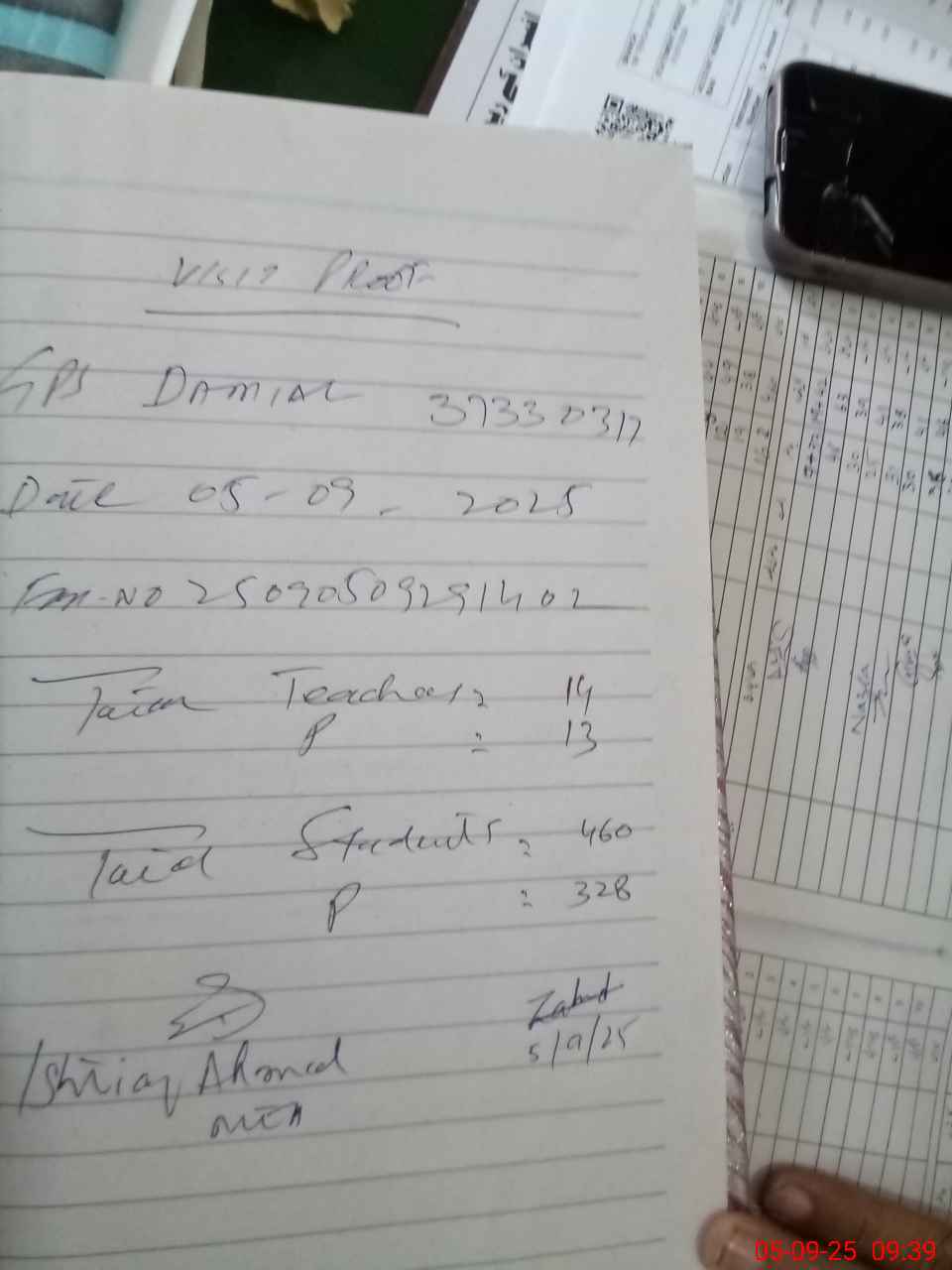 | Attendance Register | Head Teacher | MEA with School | Visit Proof |