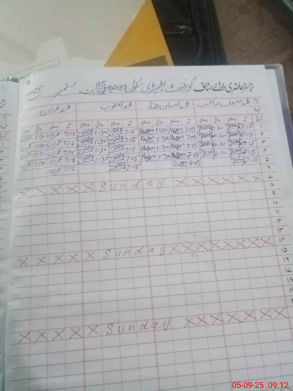 | CNIC | Full Name | Designation | R/C | Absence During Last Calender Month |