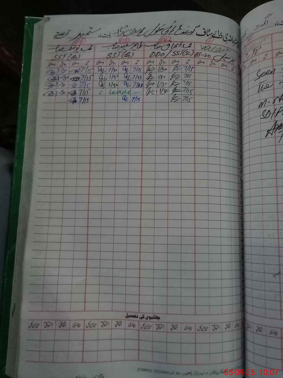 | CNIC | Full Name | Designation | R/C | Absence During Last Calender Month |