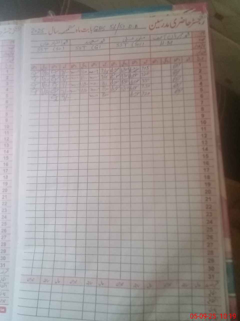 | CNIC | Full Name | Designation | R/C | Absence During Last Calender Month |