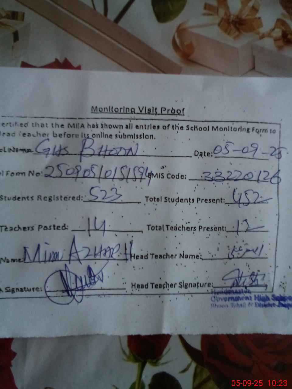 | EMIS Code: 33220126 | Name of School: GHS BHOON | |||