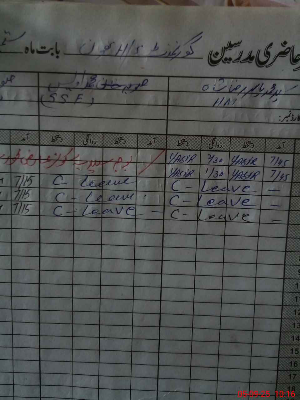 | 33**** | An**** Ha**** | NAIB QASID | Regular | 0 | 0 | 0 | 0 | 0 | 0 | 0 | 0 | 0 | Absent (Un-Authorized) |