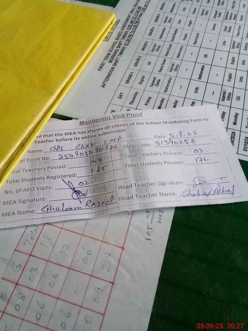 | EMIS Code: 31340258 | Name of School: GPS CHAK NO 1/NP | |||