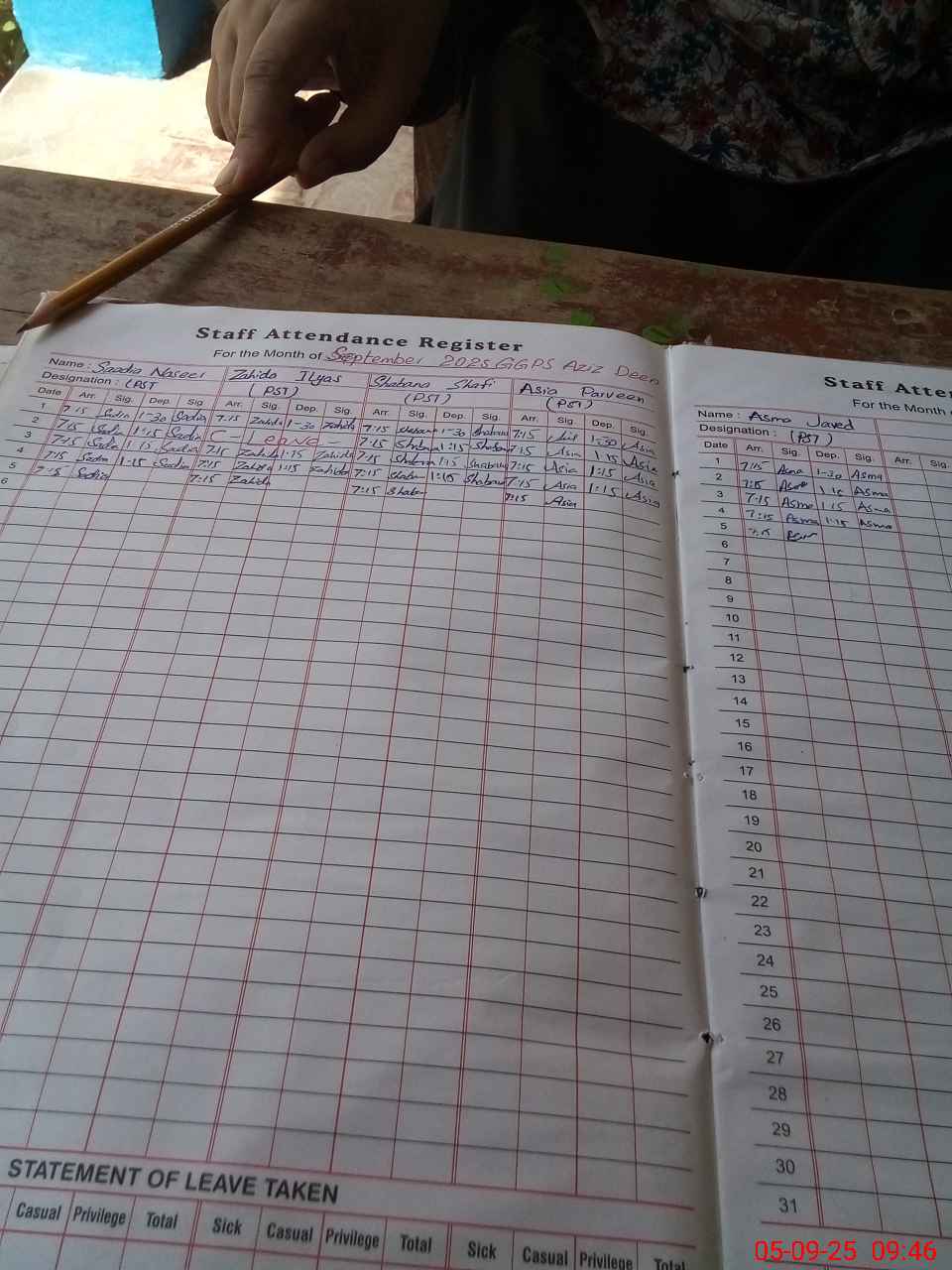 | CNIC | Full Name | Designation | R/C | Absence During Last Calender Month |