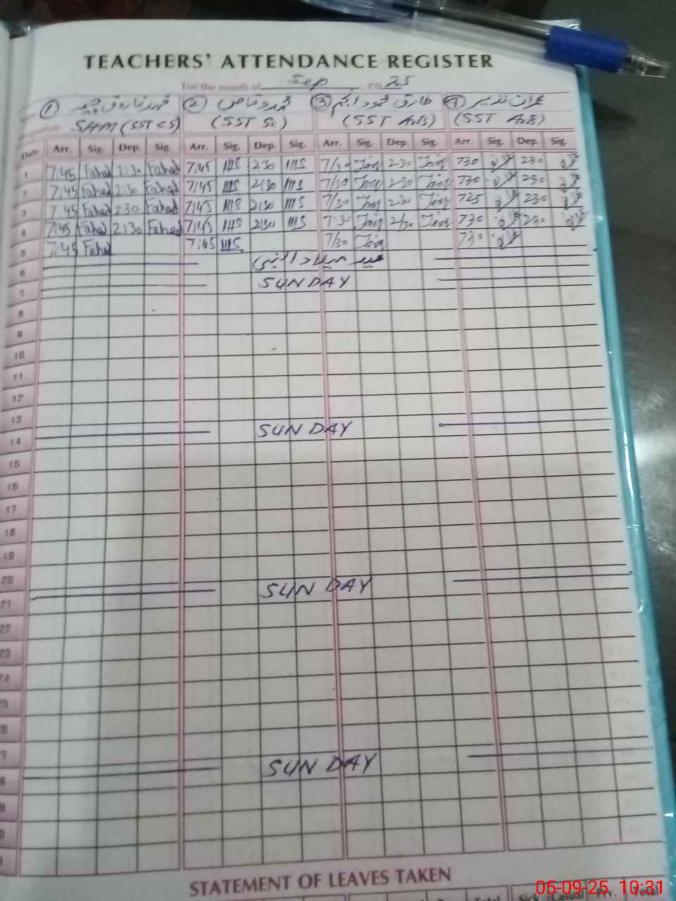 | Leave | Duty | Absent | Maternity | Medical | Ex- Pak |
