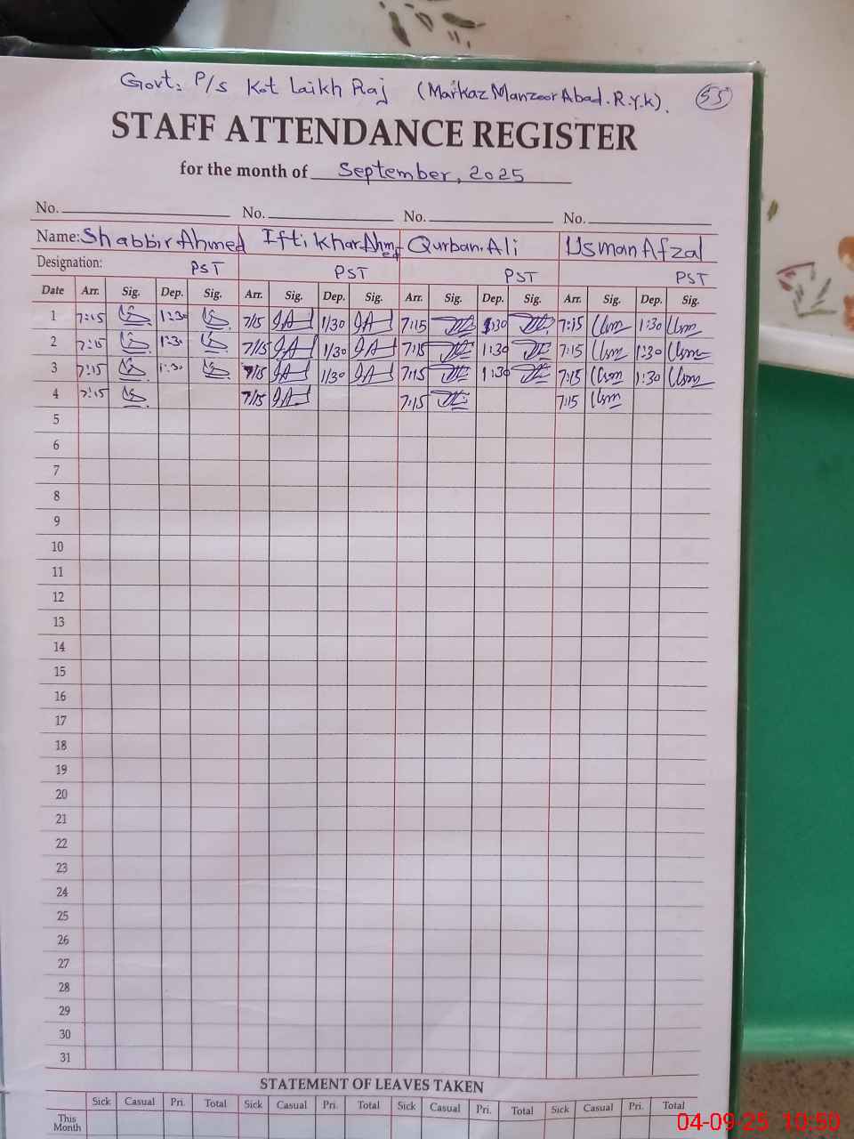 | Name: Sh**** AH**** Designation: (School Headmaster's/Headmistress's) PST Phone/Cell Number: 03**** |