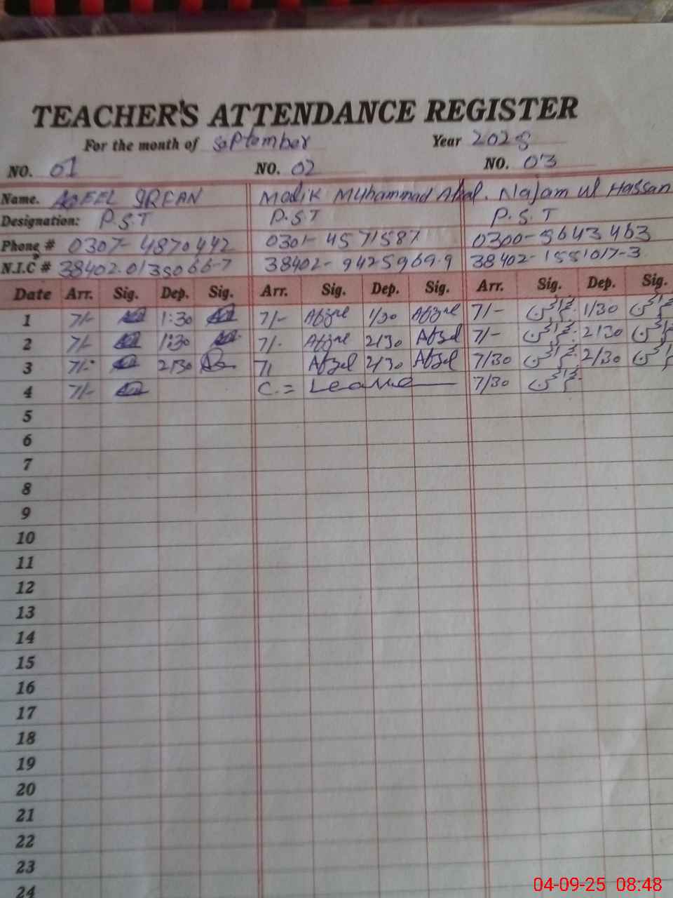| Name: AQ**** IR**** Designation: (School Headmaster's/Headmistress's) ESE (SC MATH ) Phone/Cell Number: 03**** |