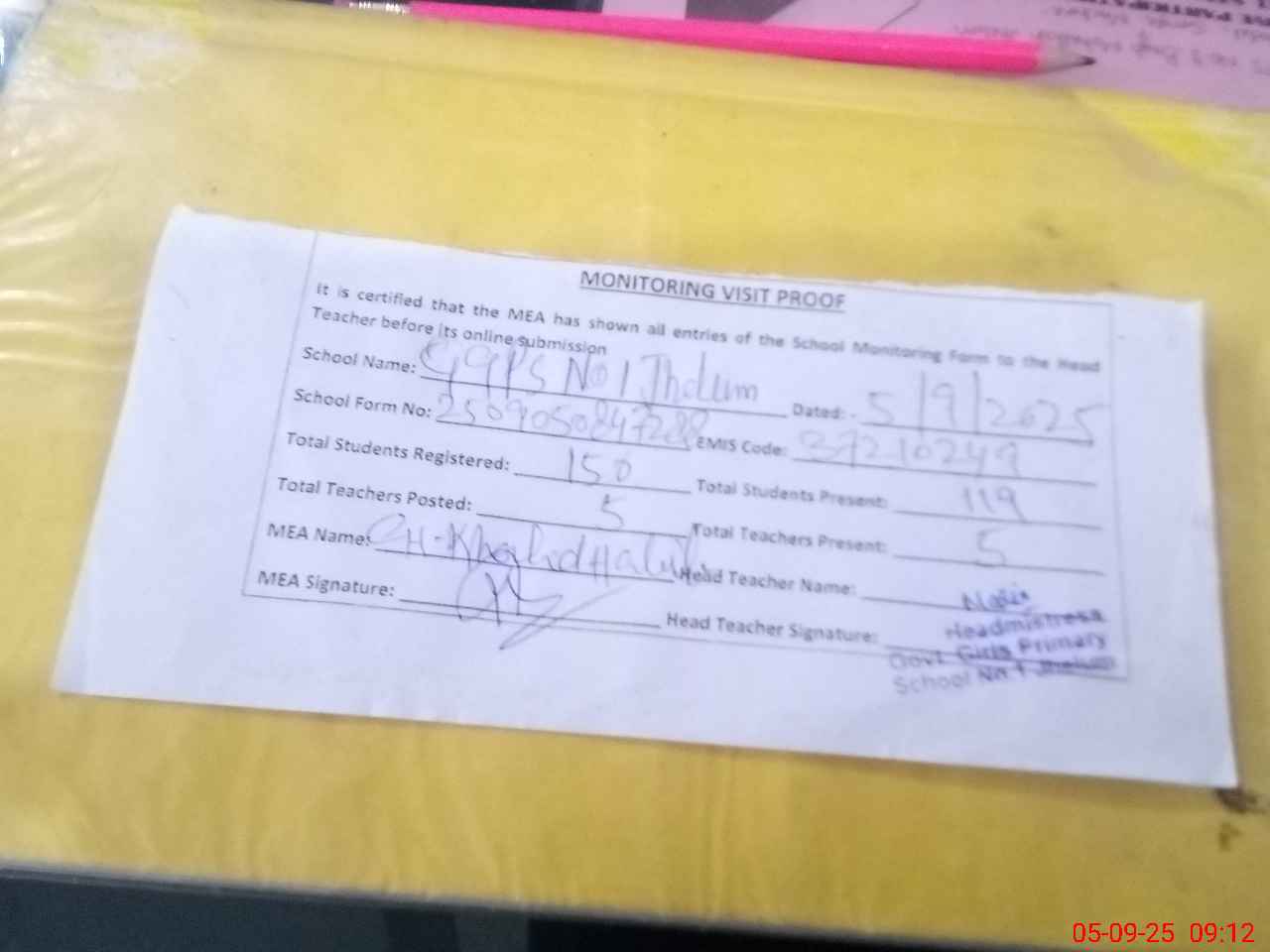 | EMIS Code: 37210249 | Name of School: GGPS NO. 1 JHELUM | |||
