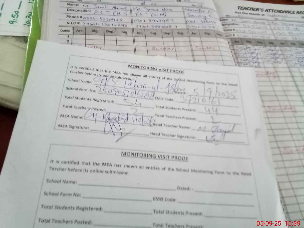 | Attendance Register | Head Teacher | MEA with School | Visit Proof |