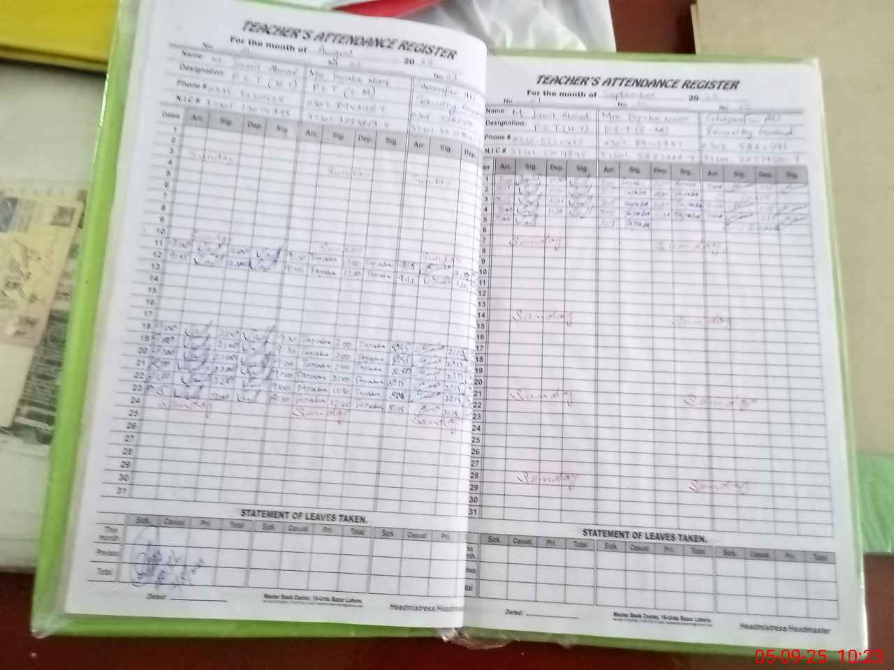 | Name: M.**** AH**** Designation: (School Headmaster's/Headmistress's) PST Phone/Cell Number: 03**** |