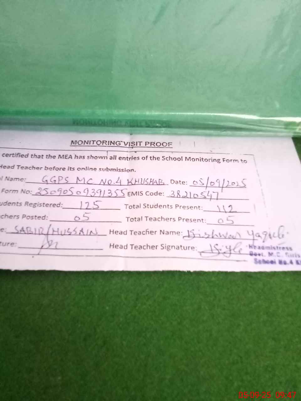 | EMIS Code: 38210547 | Name of School: GGPS MC NO. 4 KHUSHAB | |||