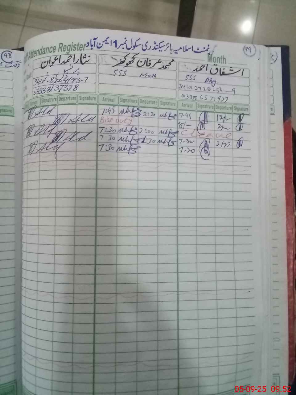 | Name: NI**** AH**** AW**** Designation: (School Headmaster's/Headmistress's) Principal Phone/Cell Number: 03**** |