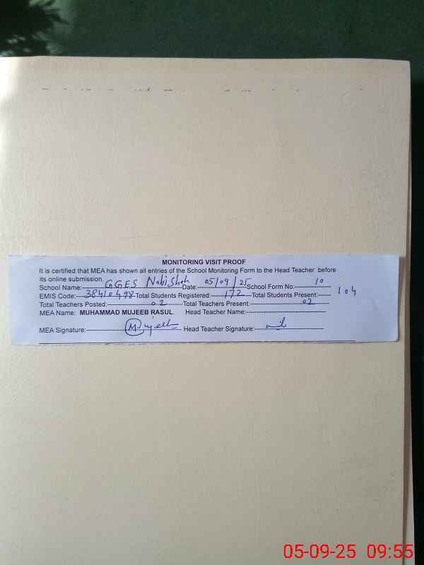| EMIS Code: 38410498 | Name of School: GGES NABI SHAH BALA | |||