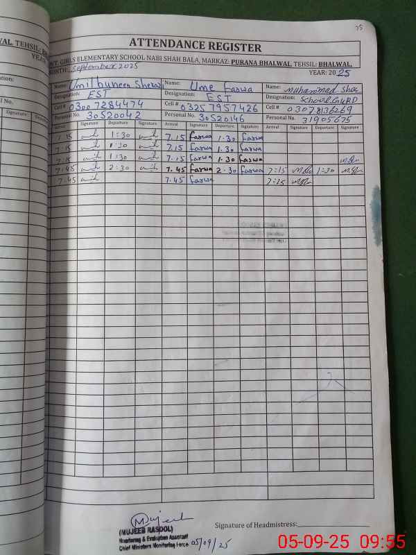 | Name: Um**** Bu**** Sh**** Designation: (School Headmaster's/Headmistress's) EST Phone/Cell Number: 03**** |