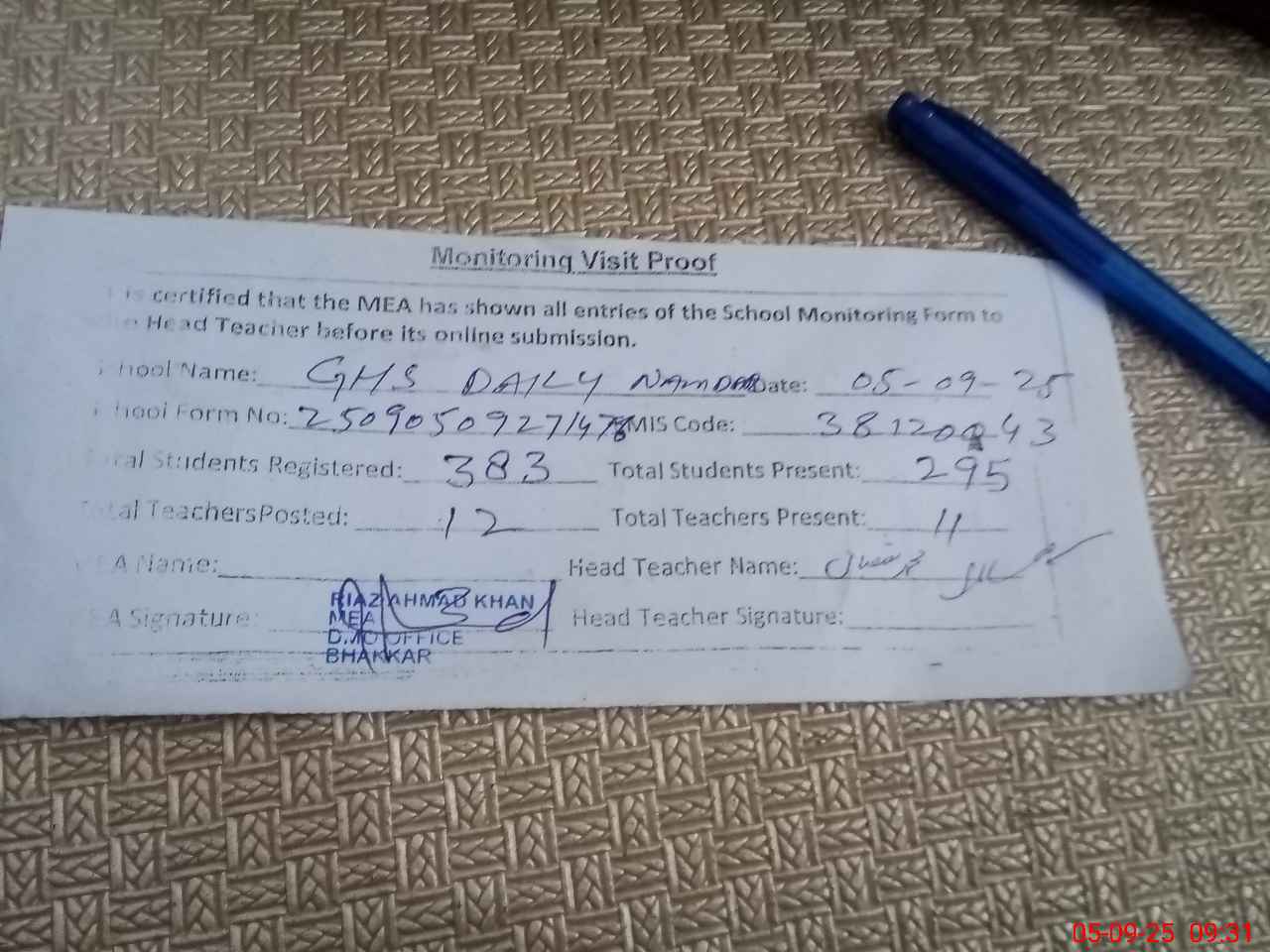 | EMIS Code: 38120043 | Name of School: GHS DAILY NAMDAR | |||