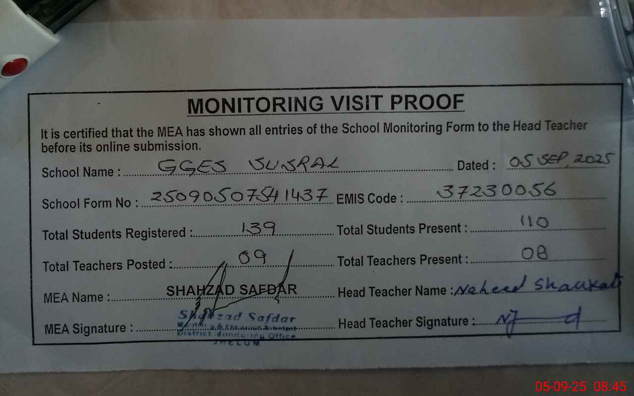 | EMIS Code: 37230056 | Name of School: GGES SUSRAL | |||