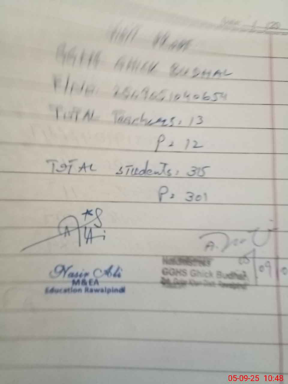 | Name: Ab**** Na**** Designation: (School Headmaster's/Headmistress's) SST (GENERAL) Phone/Cell Number: 03**** |