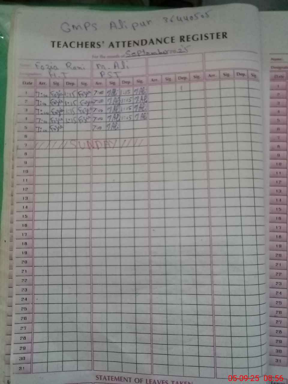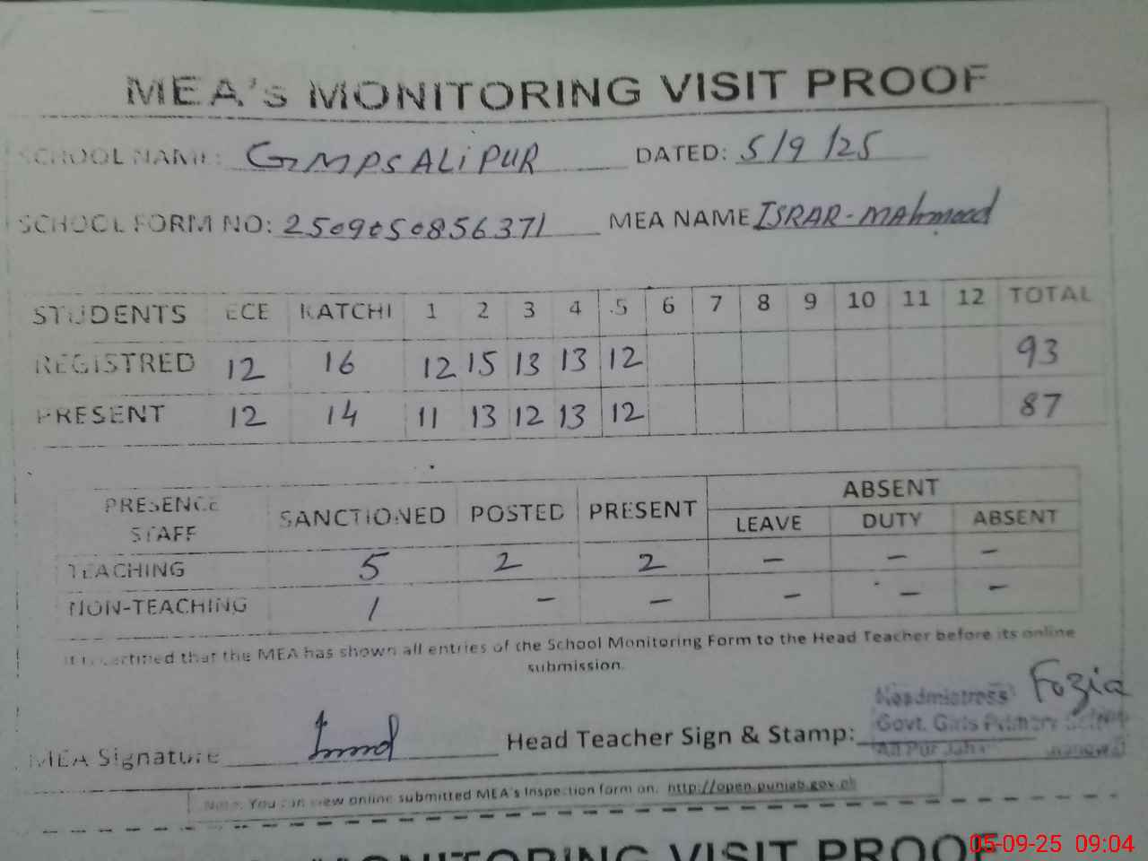 | EMIS Code: 36440505 | Name of School: GMPS ALI PUR | |||