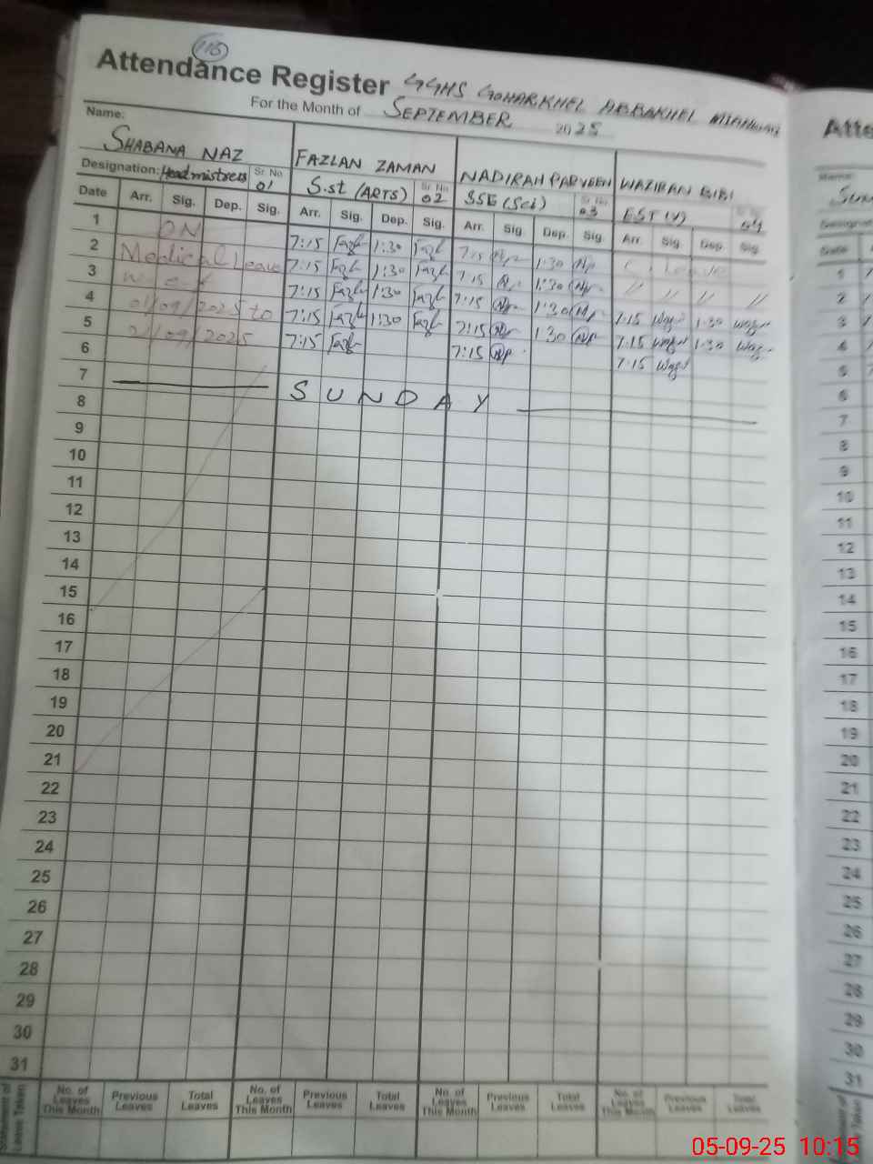 | Monitoring Date: 05-09-2025 | Start Time: 05-09-2025 09:39 AM | End Time: 05-09-2025 10:46 AM | Name of MEA: SA**** AH**** KH**** | |