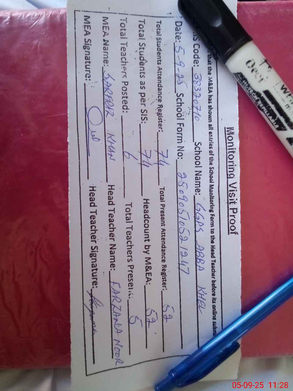 | EMIS Code: 38320710 | Name of School: GGPS ABBA KHEL | |||