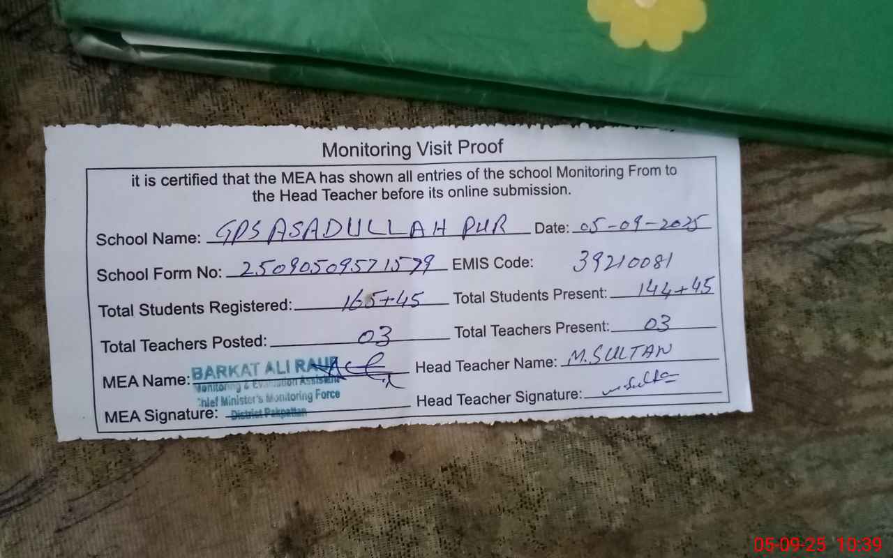| EMIS Code: 39210081 | Name of School: GPS ASADULLAH PUR | |||