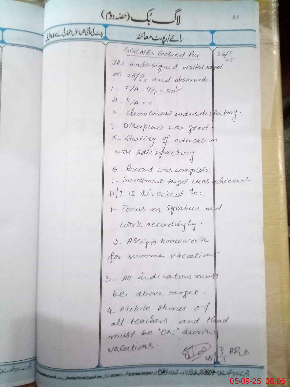 | Certified that this School was Inspected by the Undersigned MEA/DMO Today and the Information Stated Above is as Per Record. | |||||