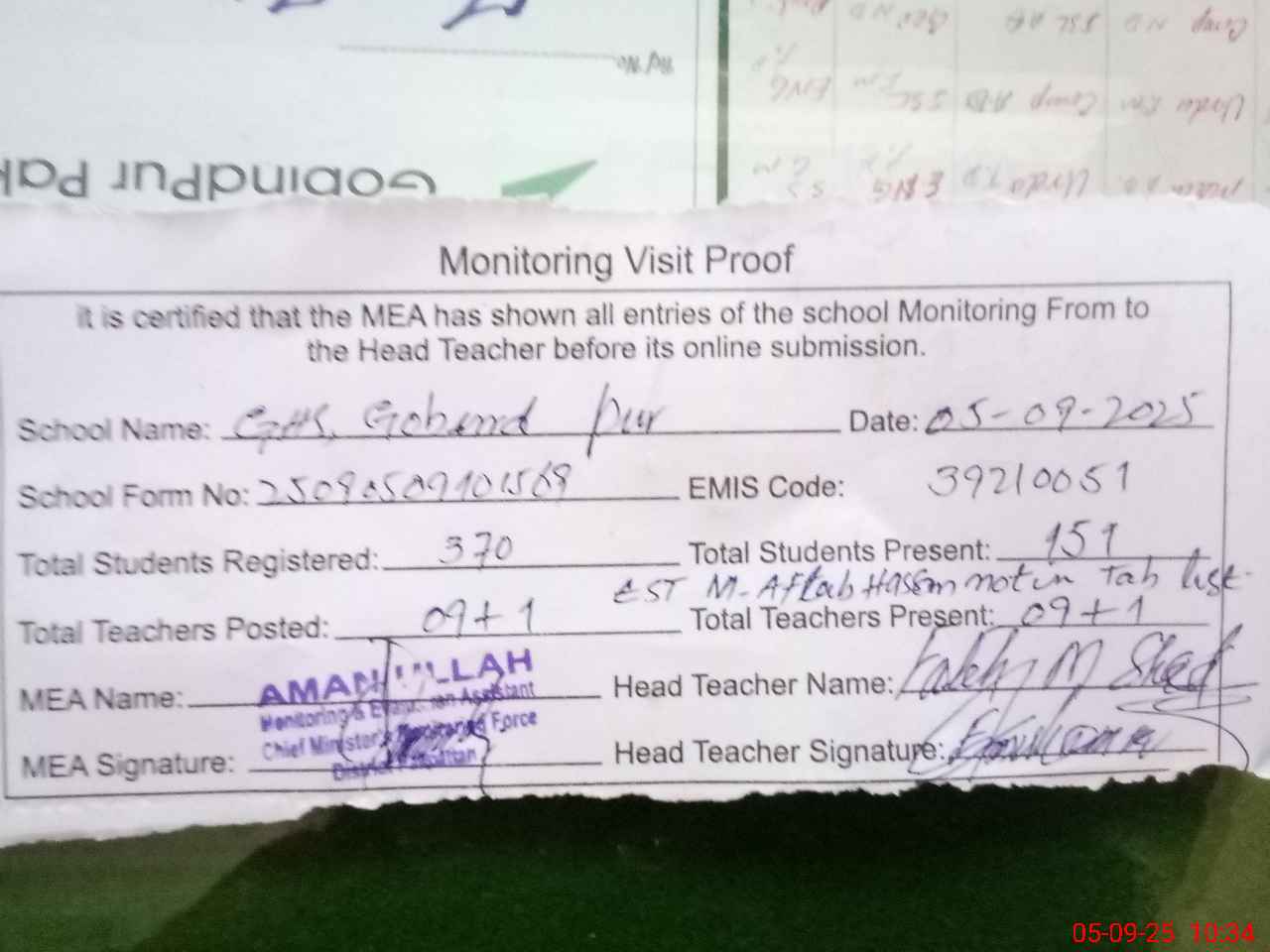 | EMIS Code: 39210051 | Name of School: GHS GOBIND PUR P/O GOBIND PUR | |||