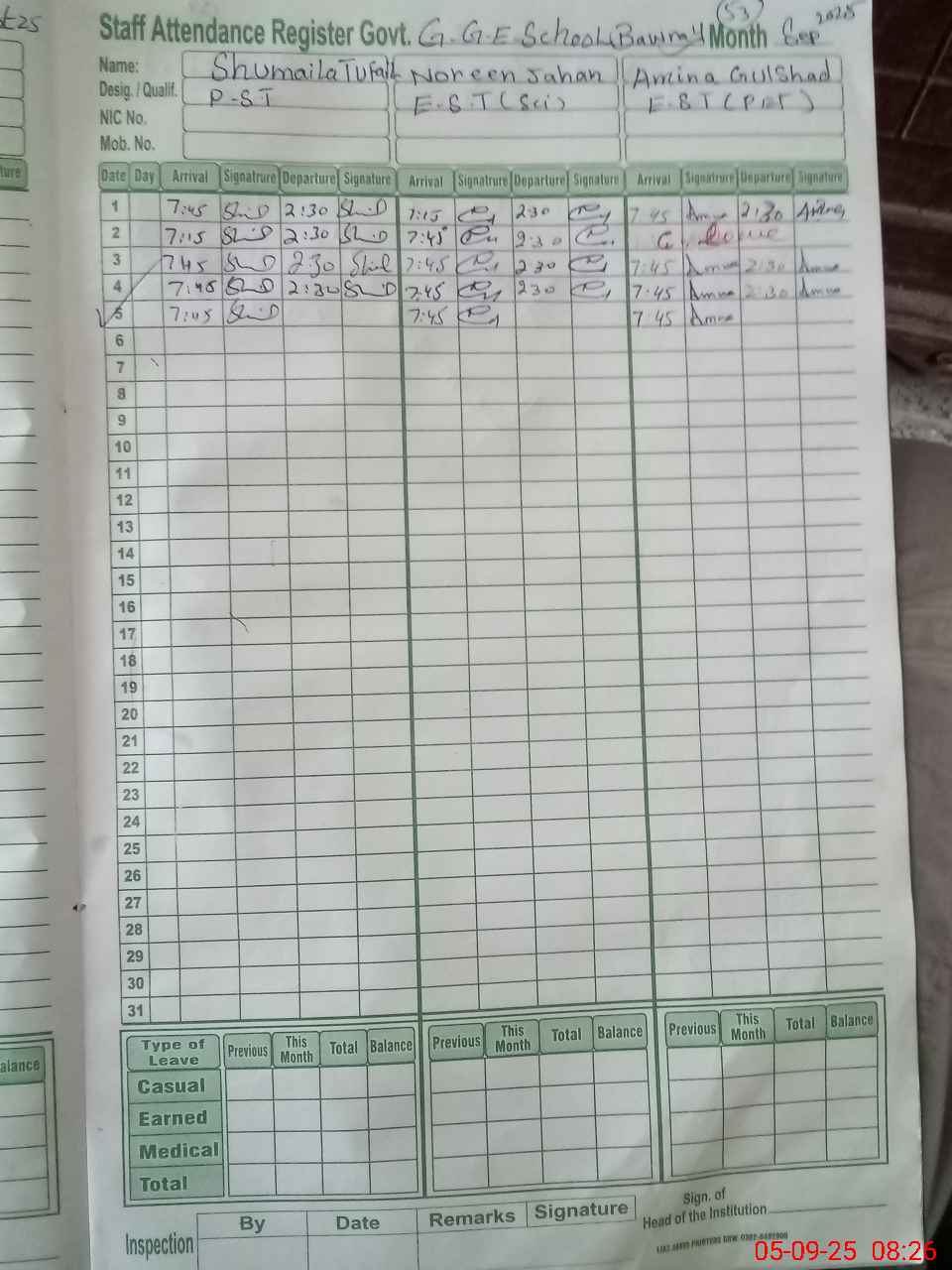 | Remarks (Use Separate Page if Required): EST SAIQA IS ABSENT FROM SCHOOL FROM 15 AUG 2024 TO DATE 03 Rooms under construction by the ad of local society | |||||