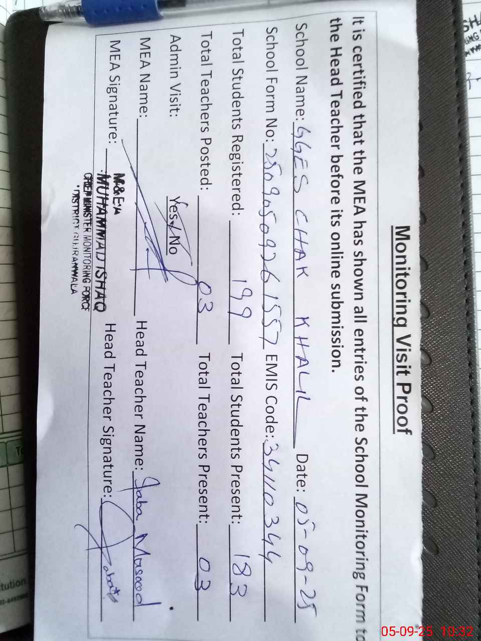 | EMIS Code: 34110344 | Name of School: GGES CHAK KHALIL | |||